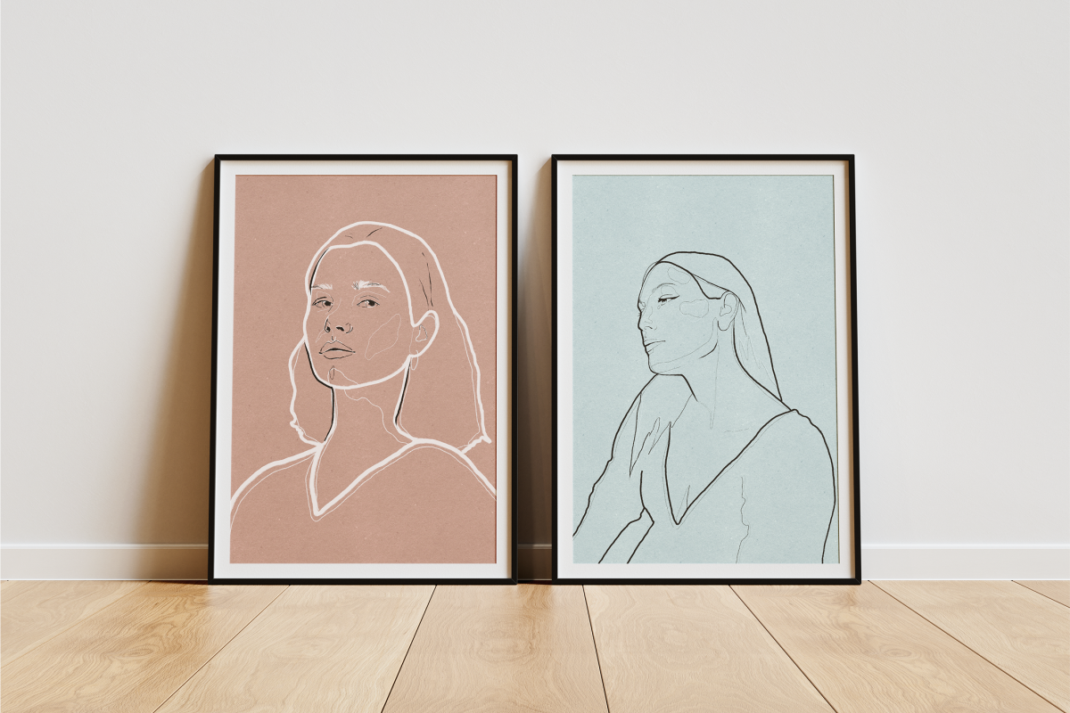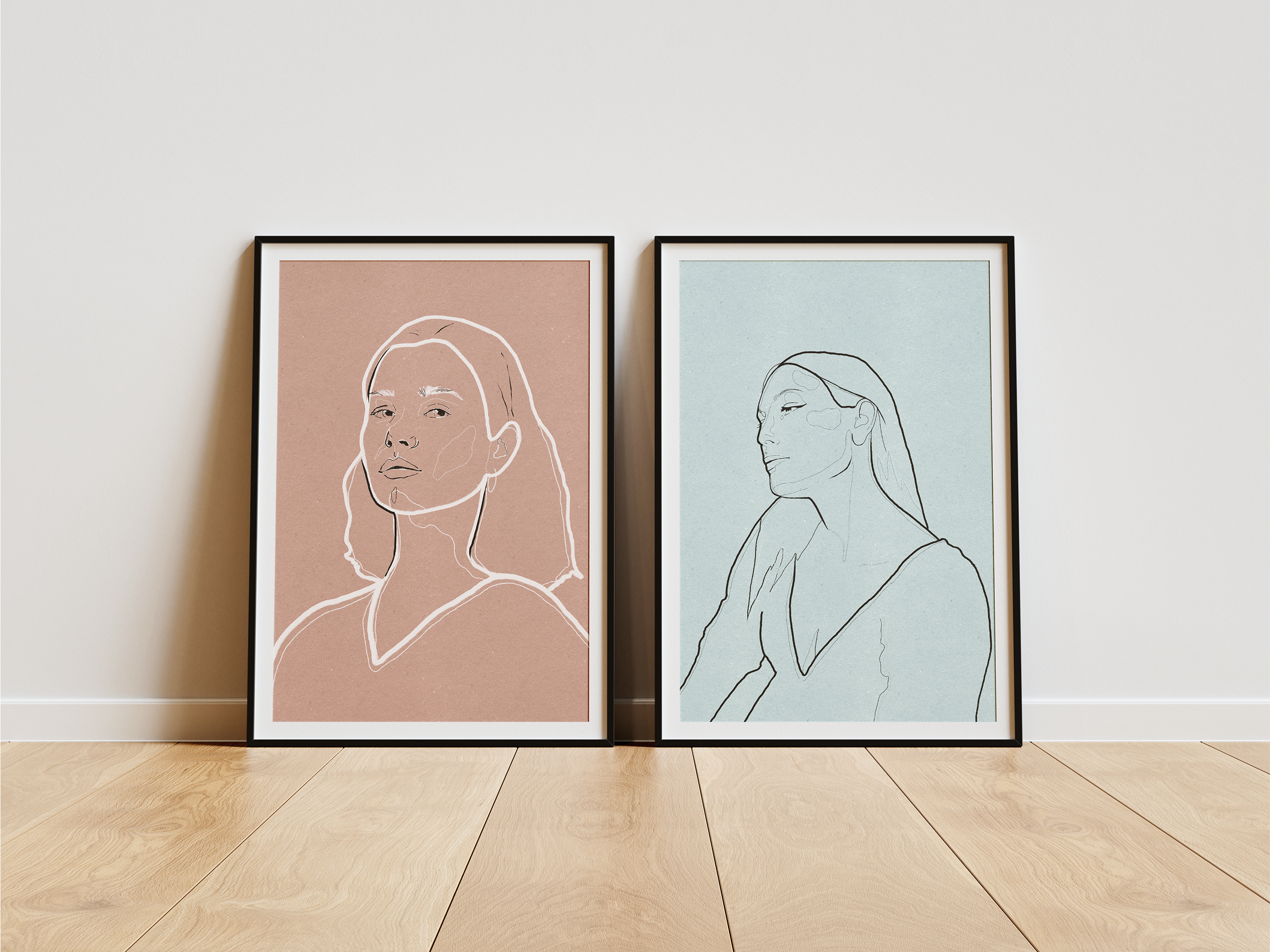 Portrety cyfrowe/linearne. Oferta ilustracji z sekcji portfolio. Projektowanie stron internetowych.